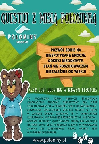 Przygotowaliśmy dla naszych najmłodszych Gości (i nie tylko) serię gier questingowych na terenie naszego Ośrodka. Zapraszamy do wspólnej zabawy całe rodziny, gwarantujemy, że nudy nie będzie, a zadania jakie przygotowała dla Was nasza Misia Połoninka umilą Wam pobyt i nie pozwolą się nudzić. Questuj i odkrywaj z Misią Połoninką!